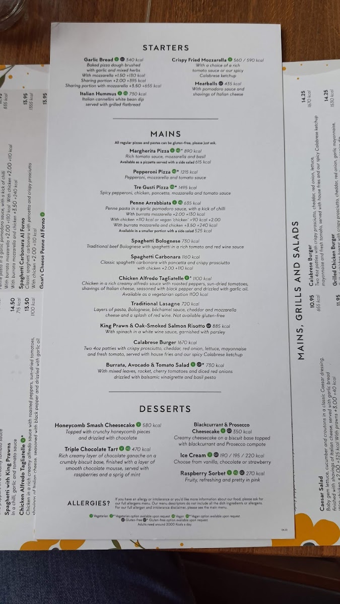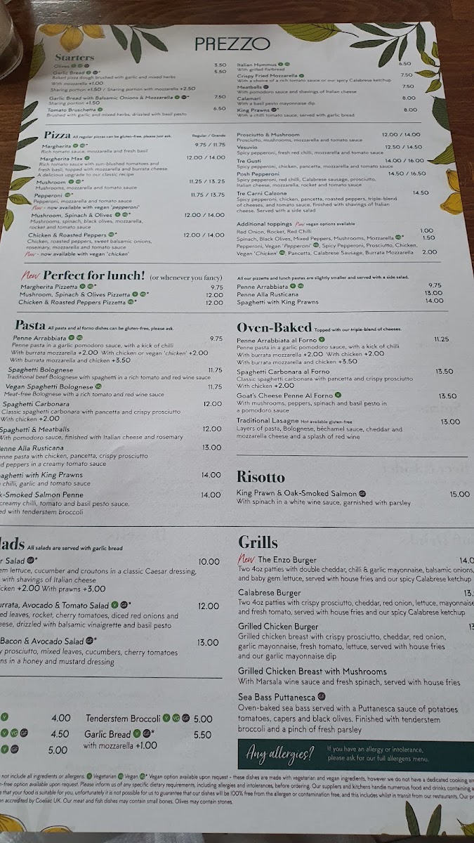 Prezzo Italian Restaurant Torquay Menu (2025 Update)